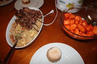 my dads dish from Timor-Leste on the left and those apples are made by a dinner guest that have an amazing yummy Hawaiian spice on them...soooo good.